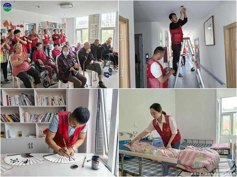 另一邊的志愿者們有的為老人梳頭,讓老人們看起來更加整潔精神;有的為老人理發(fā),剪出一個(gè)個(gè)清爽的發(fā)型;有的為老人捶背、剪指甲,給予老人身體上的關(guān)懷;還有的志愿者幫忙收拾內(nèi)務(wù),讓老人們的居住環(huán)境更加舒適整潔。志愿者們的貼心關(guān)懷,讓老人們感受到了家的溫暖。