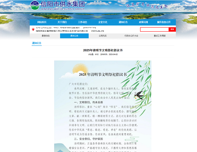 2025年清明節(jié)期間,市供水公司積極響應國家關于“移風易俗、文明祭掃”的號召,以“綠色清明 文明追思”為主題,結合“緬懷先烈、弘揚傳統”的核心思想,組織開展了一系列主題活動。